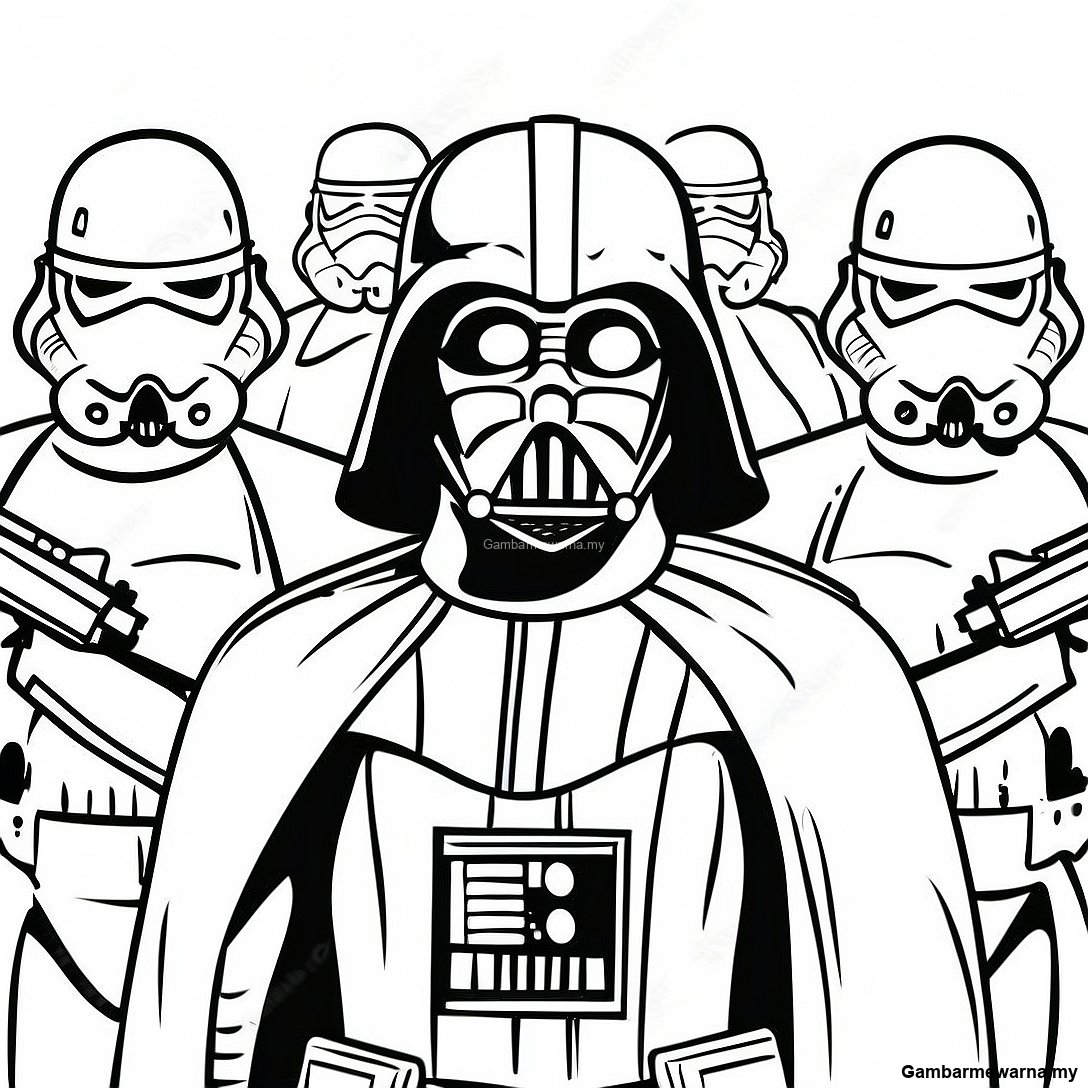 Darth Vader Dengan Stormtroopers Halaman Mewarna