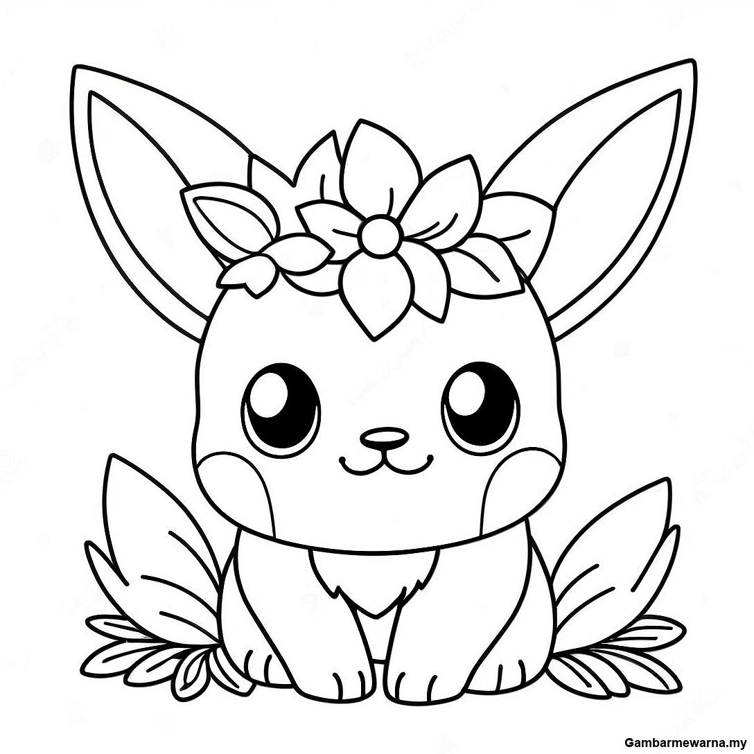 Muat turun PDF Boleh Cetak Eevee Dengan Mahkota Bunga Halaman Mewarna