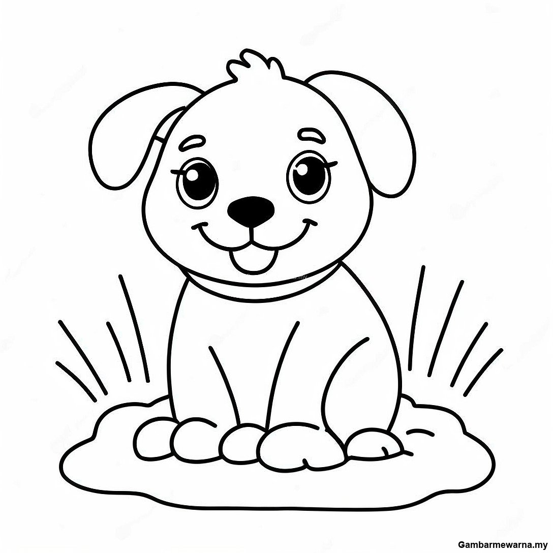 Gambar Mewarna Anak Anjing Comel Bermain Dalam Salji