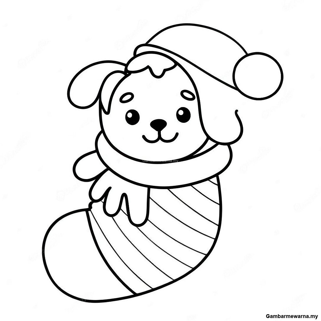 Gambar Mewarna Anak Anjing Dalam Stoking Krismas