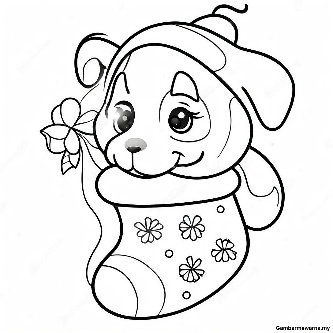Gambar Mewarna Anak Anjing Dalam Stoking Krismas