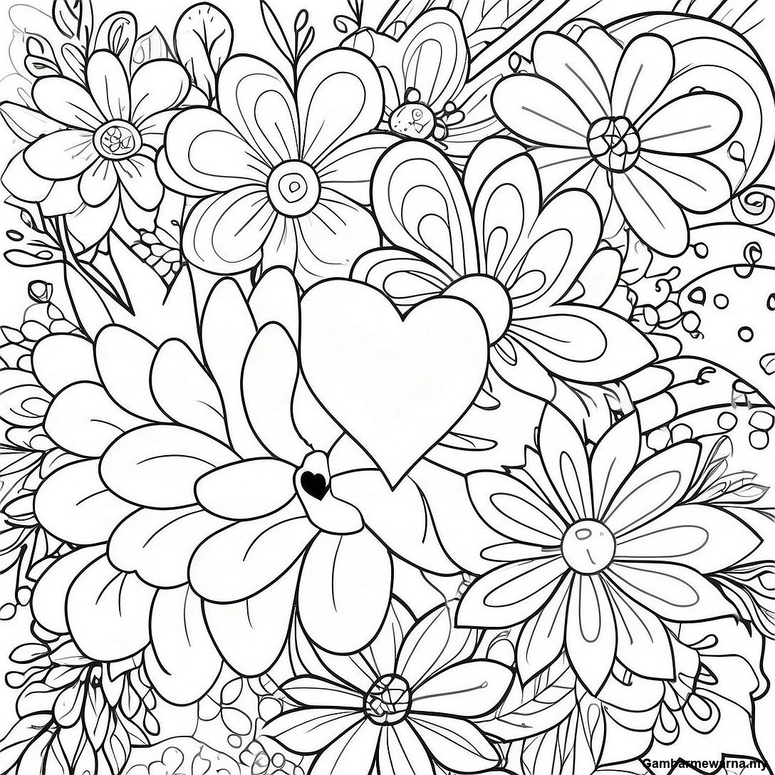 Gambar Mewarna Bunga Saya Cinta Kamu Yang Berwarna-Warni