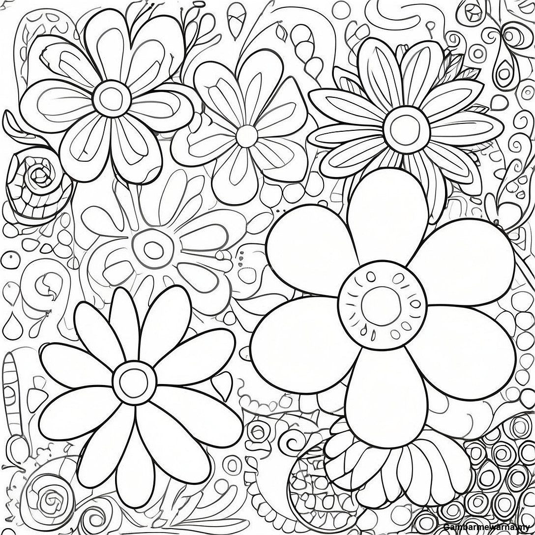 Gambar Mewarna Kuasa Bunga 60an Yang Berwarna-Warni