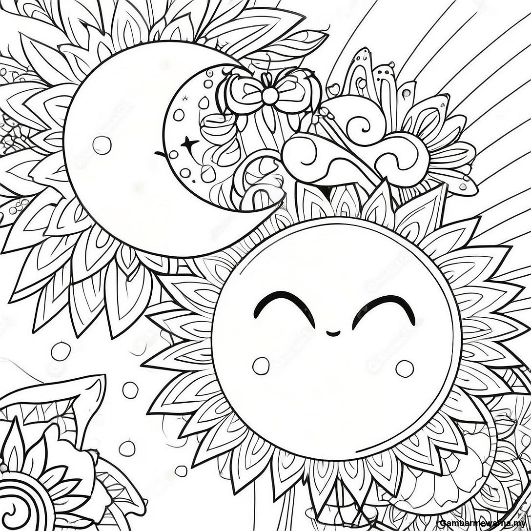 Gambar Mewarna Matahari Dan Bulan Bohemian Yang Terperinci