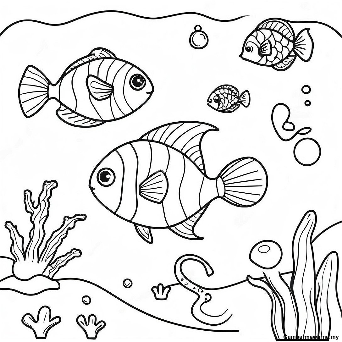 Gambar Mewarna Pemandangan Laut Bawah Air