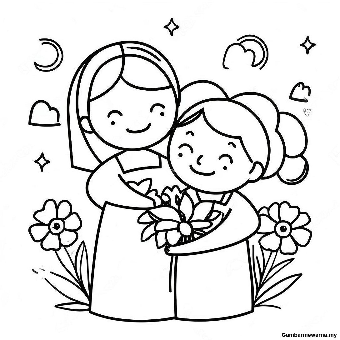 Gambar Mewarna Perayaan Hari Ibu Yang Ceria