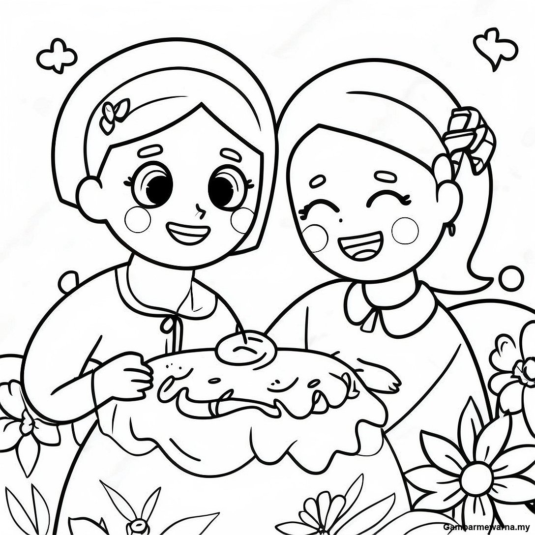 Gambar Mewarna Perayaan Hari Ibu Yang Ceria