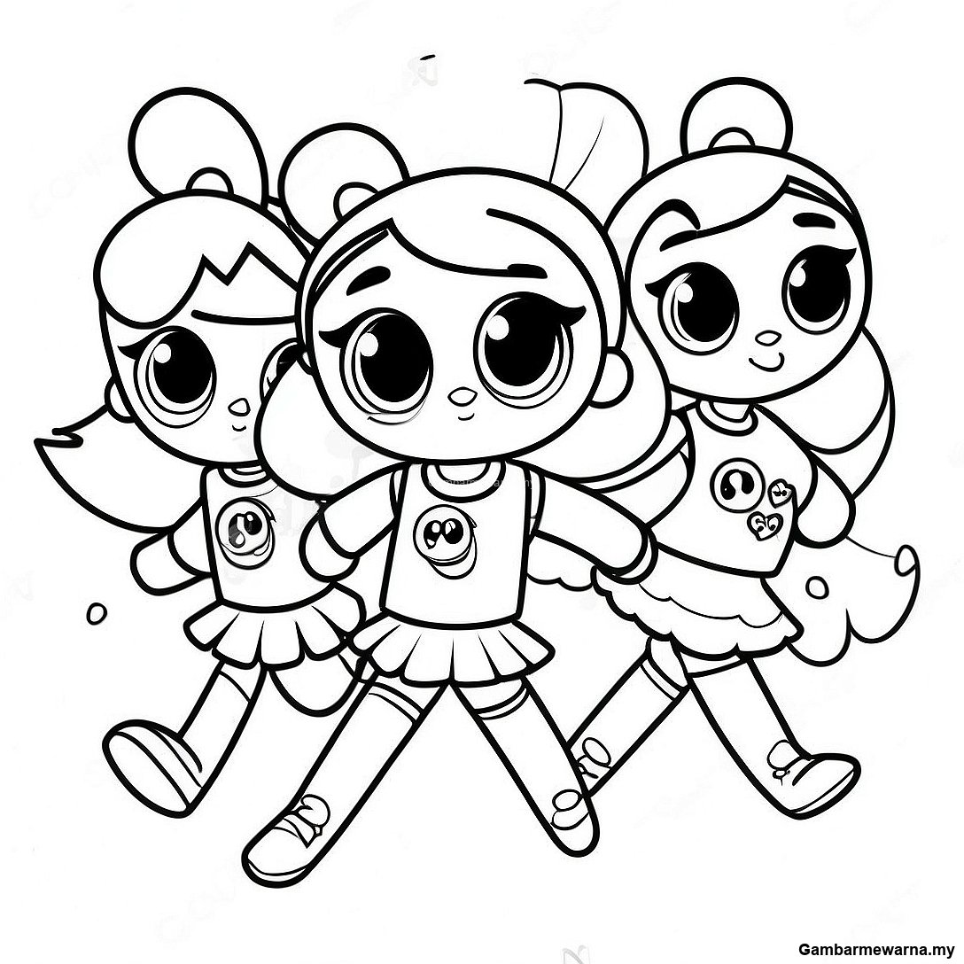 Gambar Mewarna Powerpuff Girls Menyelamatkan Hari
