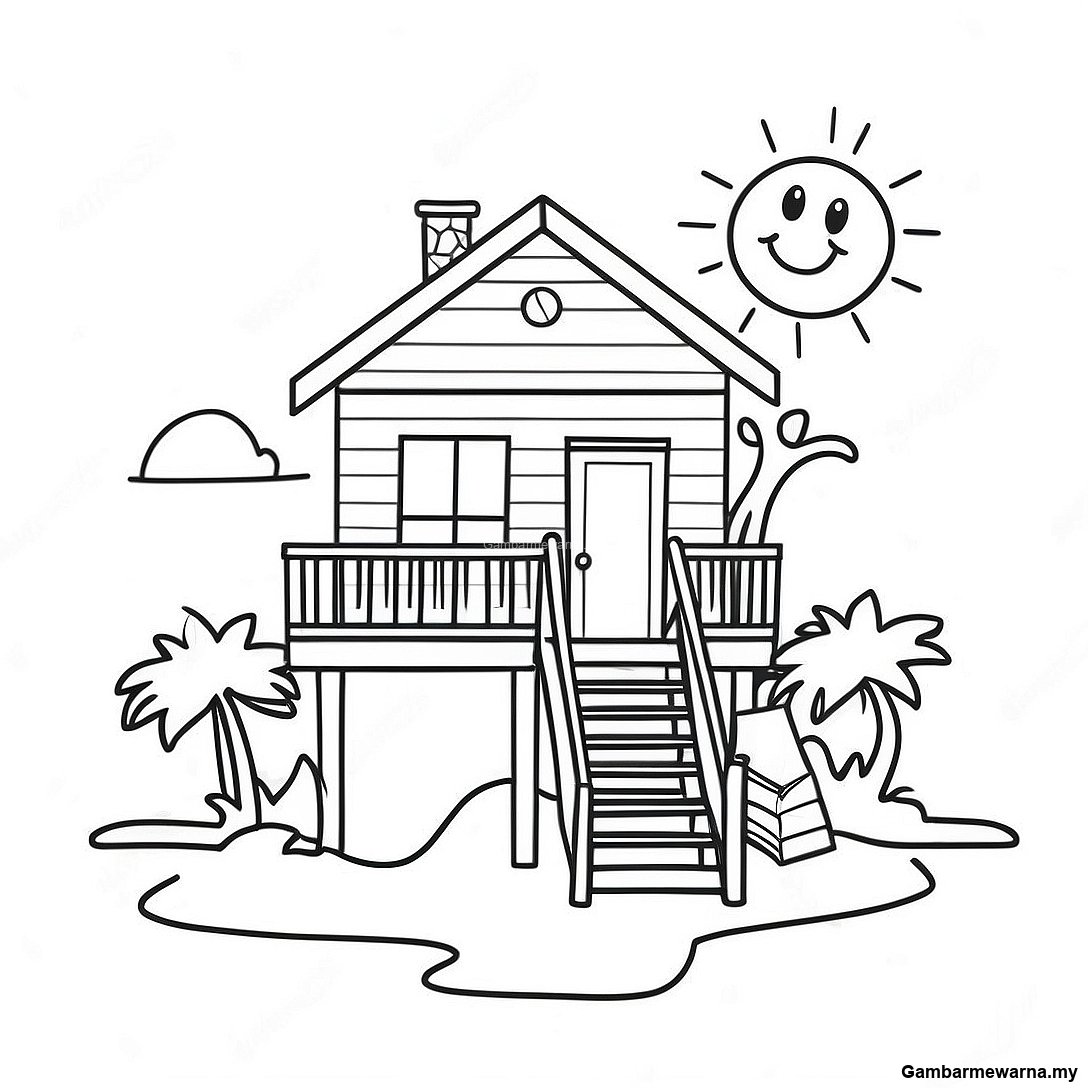 Muat turun PDF Boleh Cetak Gambar Mewarna Rumah Pantai Cerah