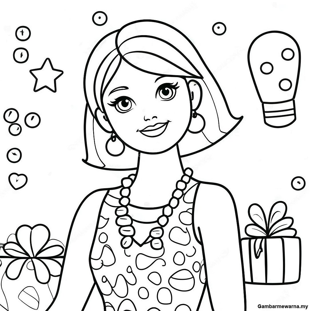 Gambar Mewarna Sambutan Hari Jadi Barbie
