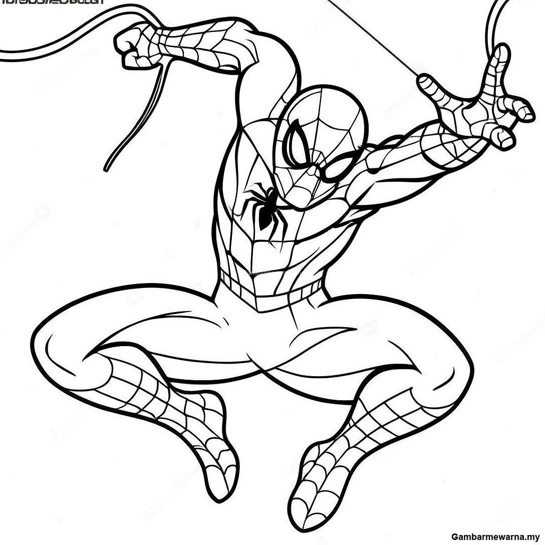 Gambar Mewarna Spider Man dalam Pose Aksi