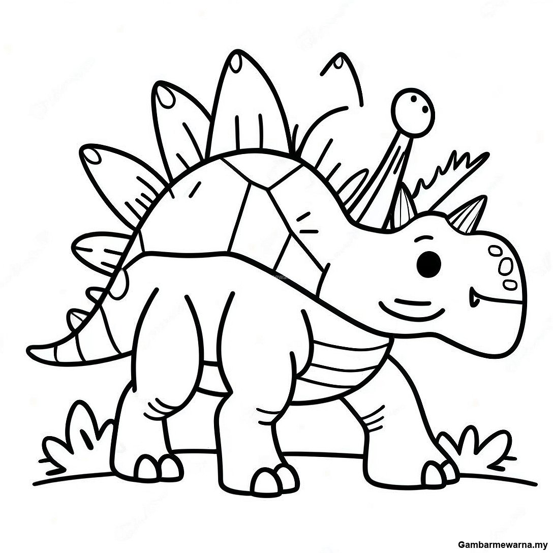 Muat turun PDF Boleh Cetak Gambar Mewarna Stegosaurus Berjalan