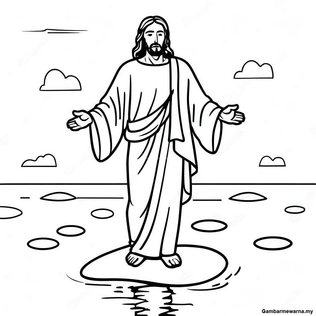 Gambar Mewarna Yesus Berjalan Di Atas Air