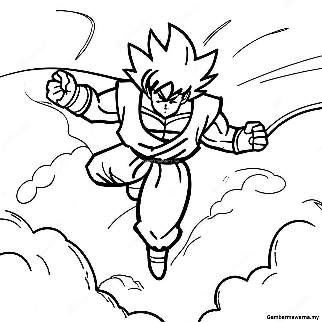 Goku Terbang Dengan Nimbus Halaman Mewarna