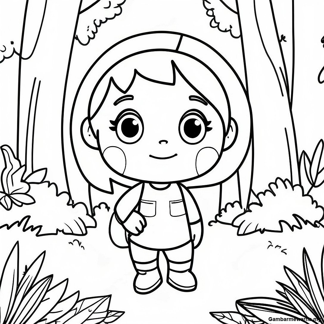 Watak Cocomelon Bermain di Taman Gambar Mewarna