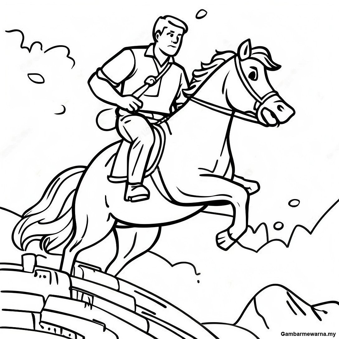 Halaman Mewarna Adegan Aksi Raja Bukit Yang Dinamik