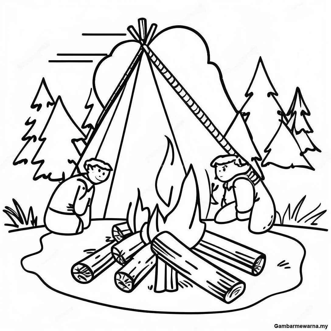 Halaman Mewarna Adegan Api Unggun Perintis 128302 61746