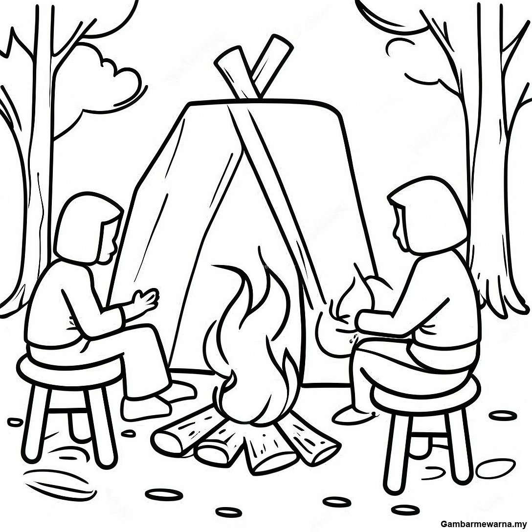 Halaman Mewarna Adegan Api Unggun Perintis
