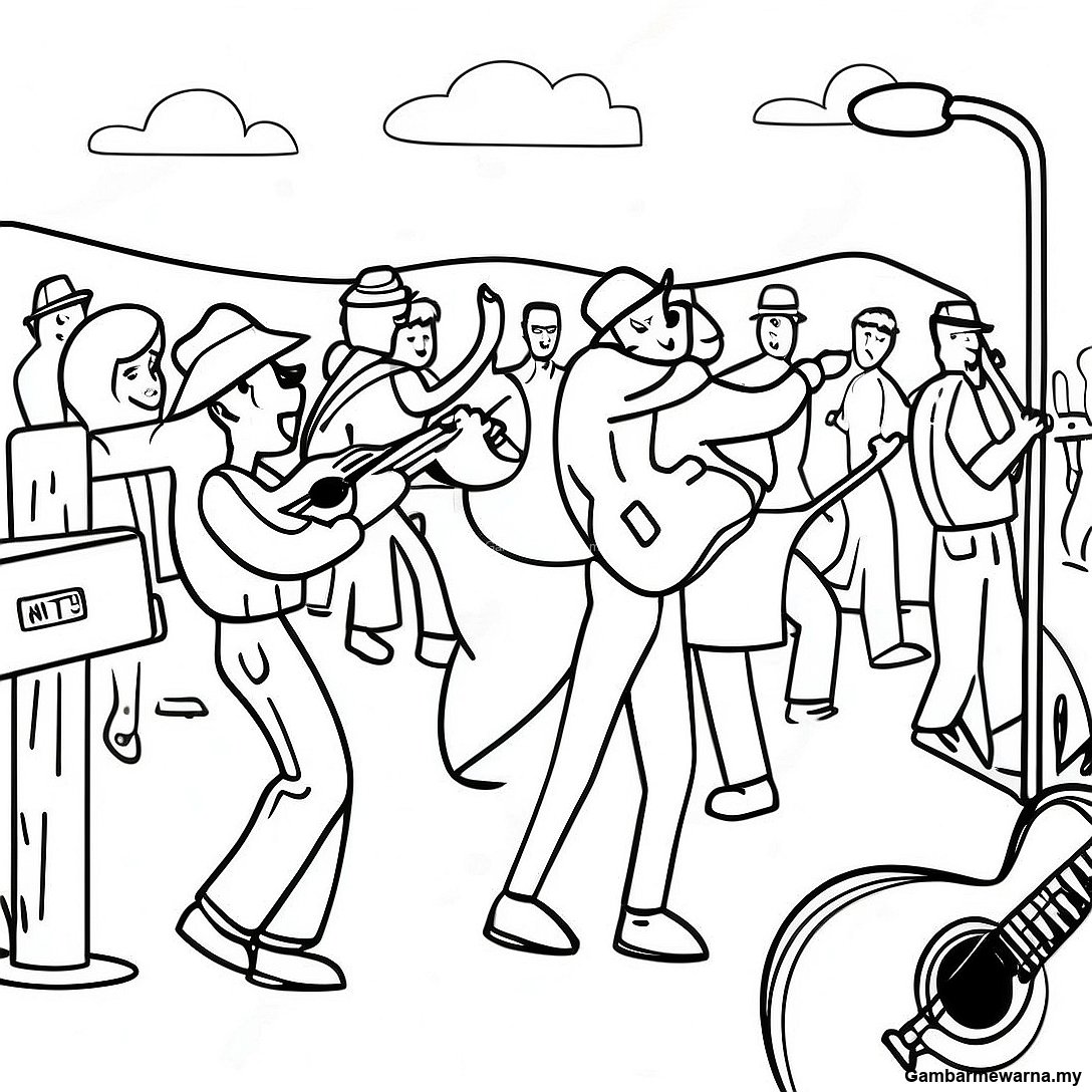 Muat turun PDF Boleh Cetak Halaman Mewarna Adegan Festival Muzik Country