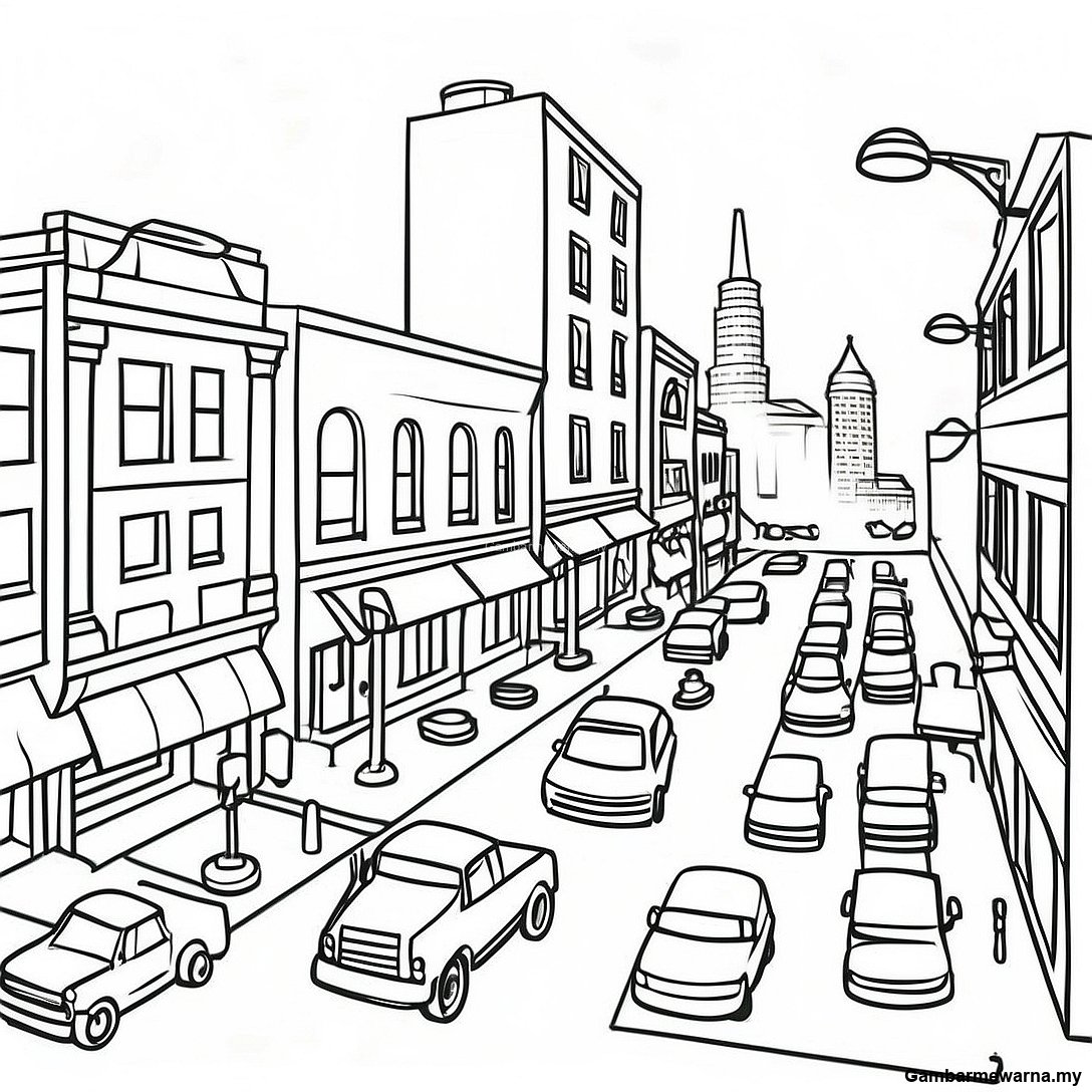 Muat turun PDF Boleh Cetak Halaman Mewarna Adegan Jalan Sibuk Di Kota Lego