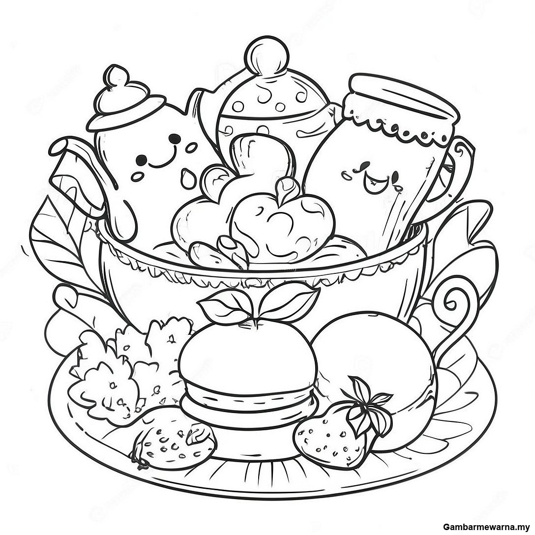 Muat turun PDF Boleh Cetak Halaman Mewarna Adegan Majlis Teh Vintage