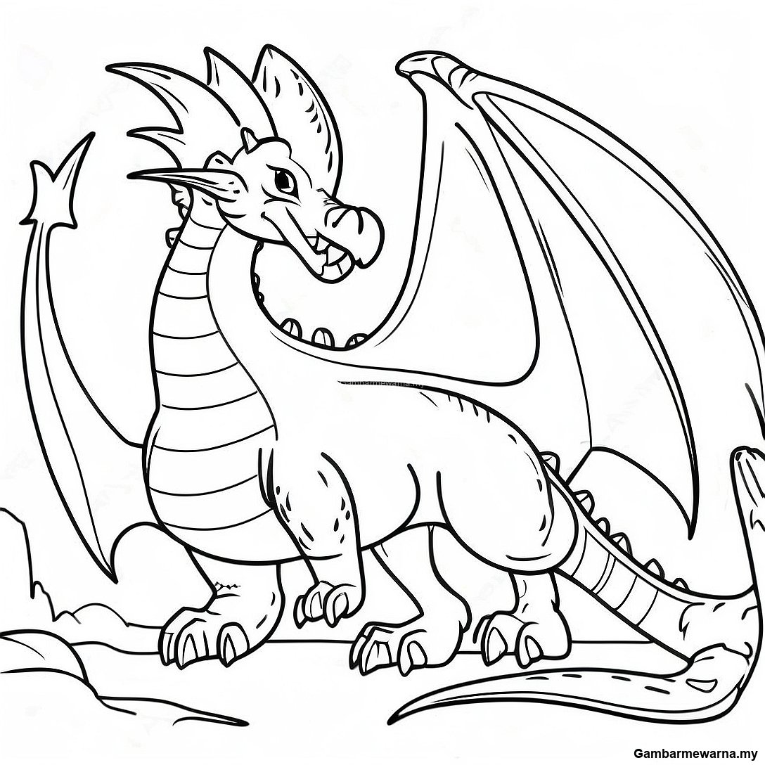 Halaman Mewarna Adegan Pertarungan Naga Yang Garang