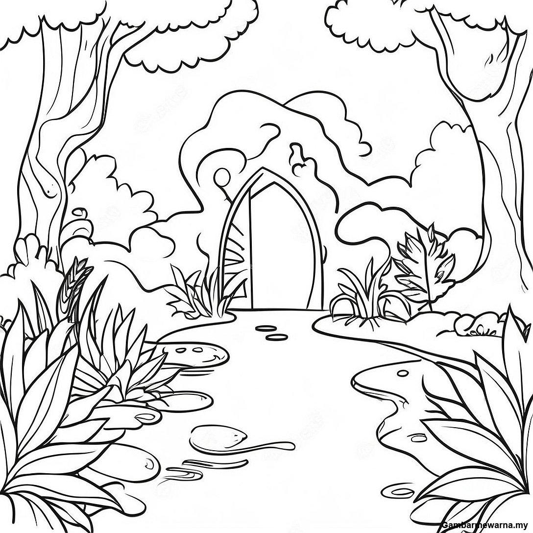 Halaman Mewarna Adegan Taman Banban Yang Misteri