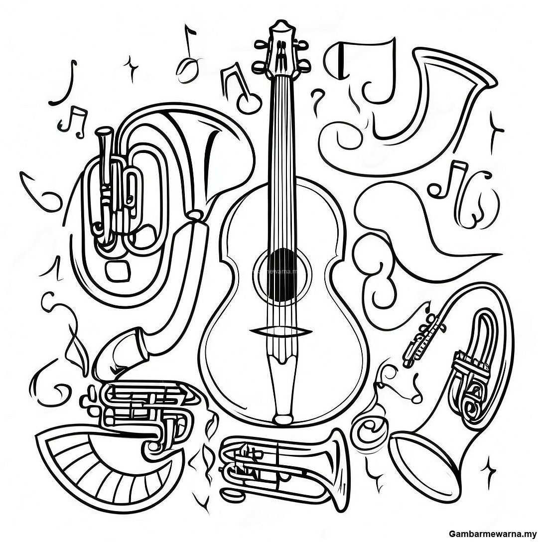 Muat turun PDF Boleh Cetak Halaman Mewarna Alat Muzik