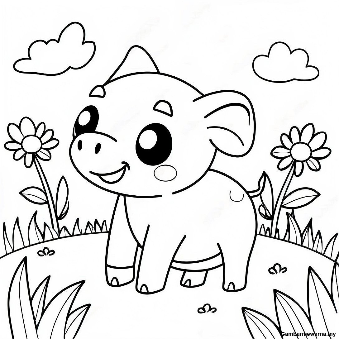 Halaman Mewarna Anak Babi Comel Di Ladang Bunga 55344 12111
