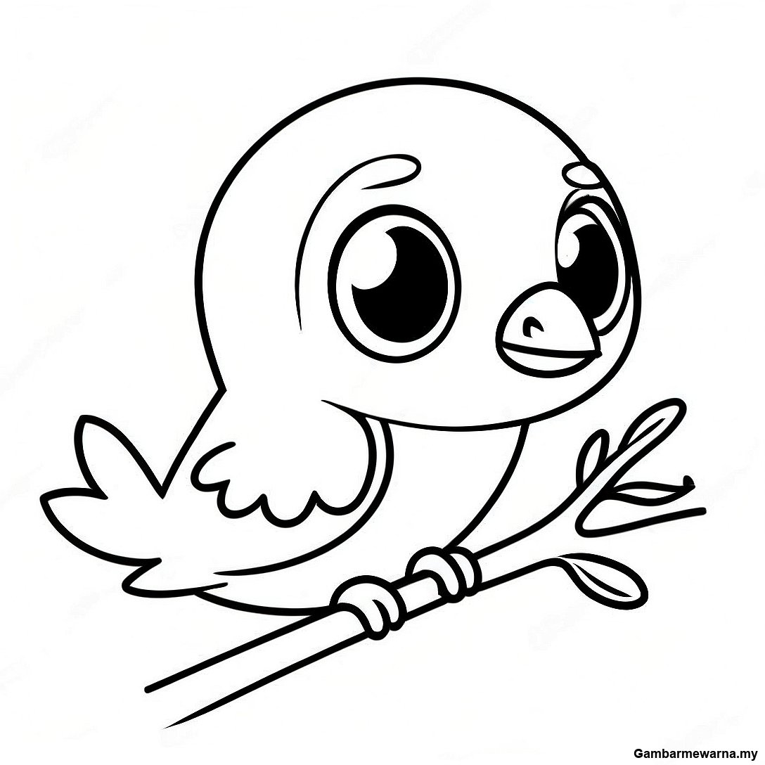Halaman Mewarna Anak Burung Parakeet Yang Comel