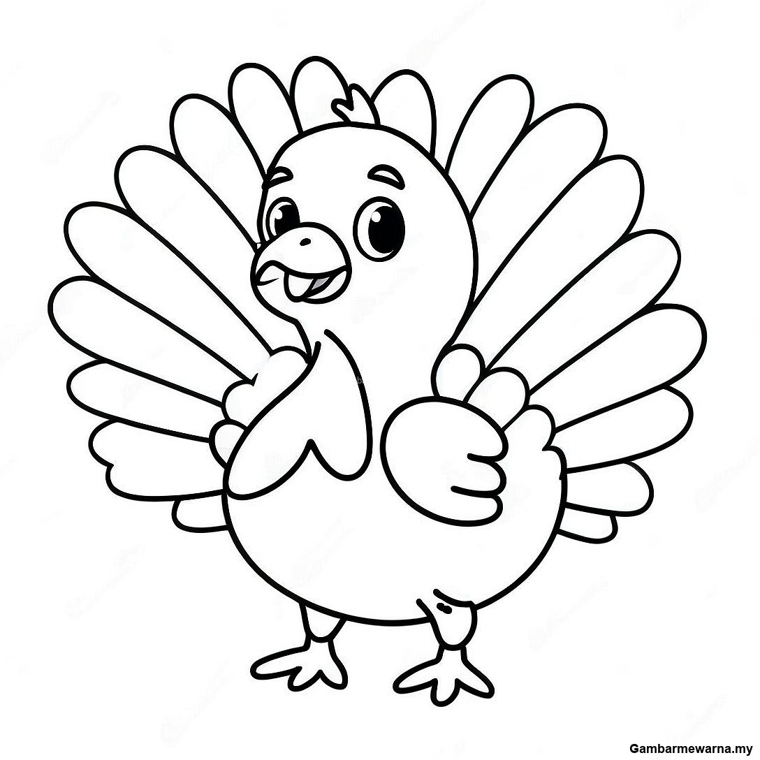 Muat turun PDF Boleh Cetak Halaman Mewarna Anak Kalkun Gembira