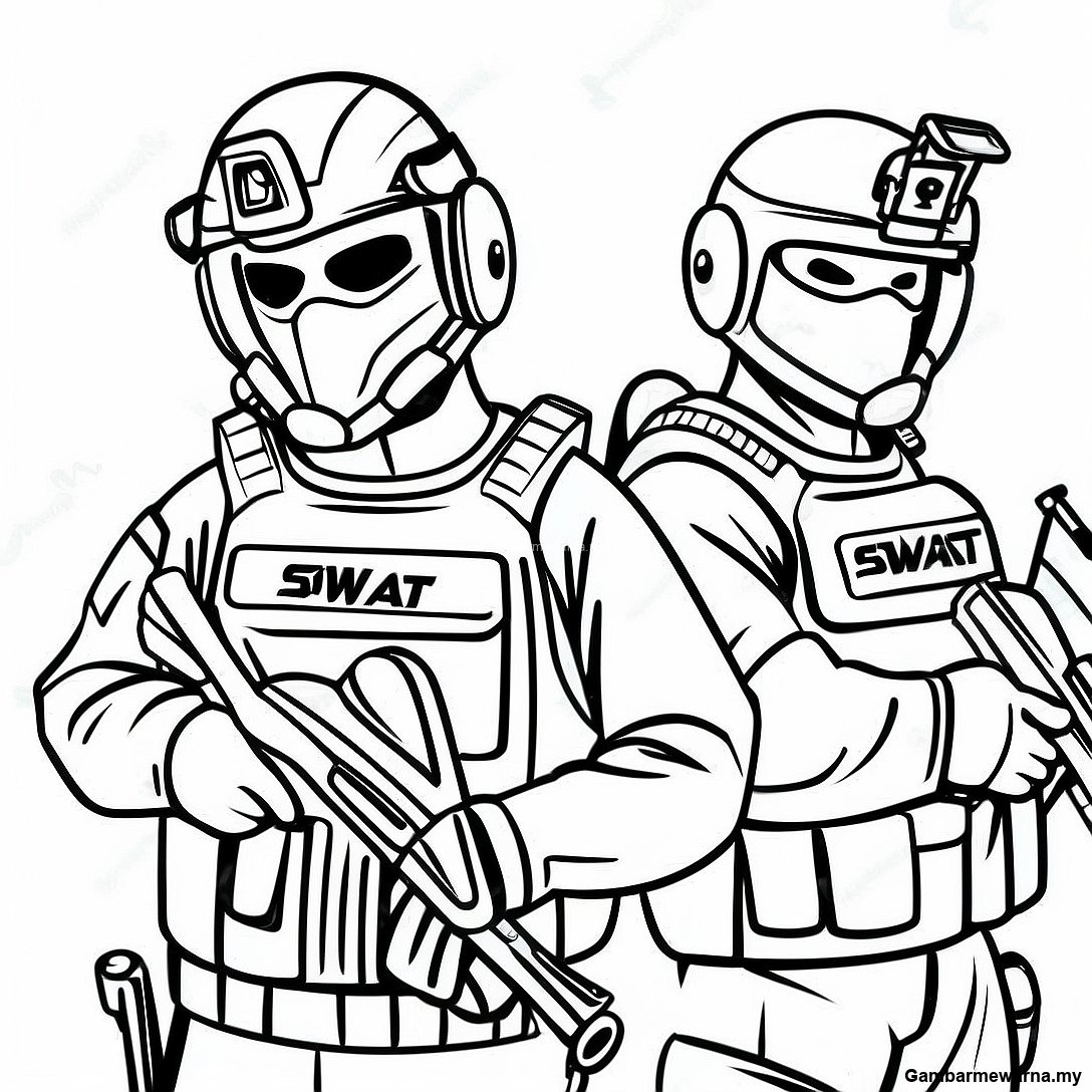 Halaman Mewarna Anggota Pasukan Swat Dalam Uniform