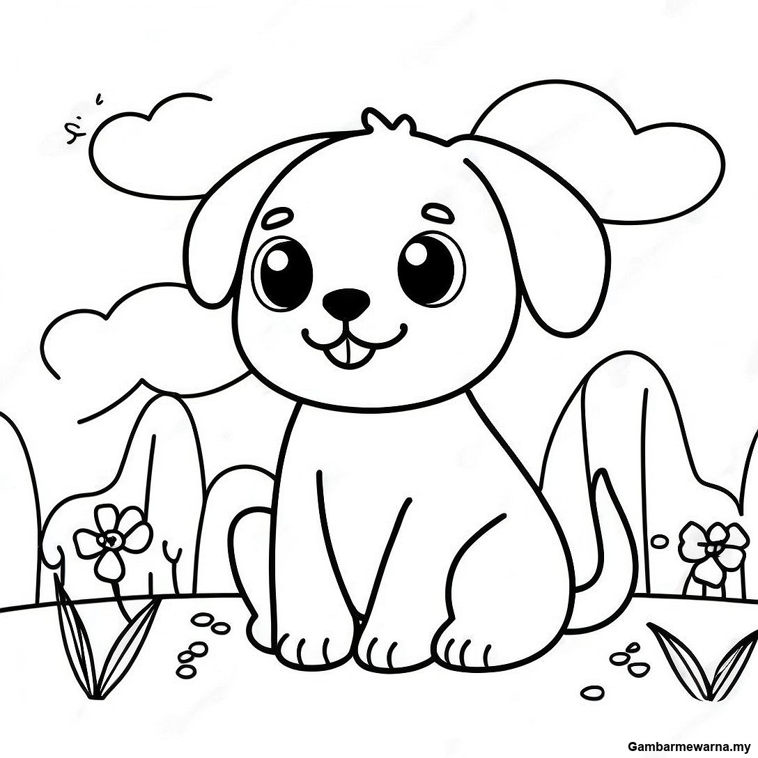 Muat turun PDF Boleh Cetak Halaman Mewarna Anjing Kawaii