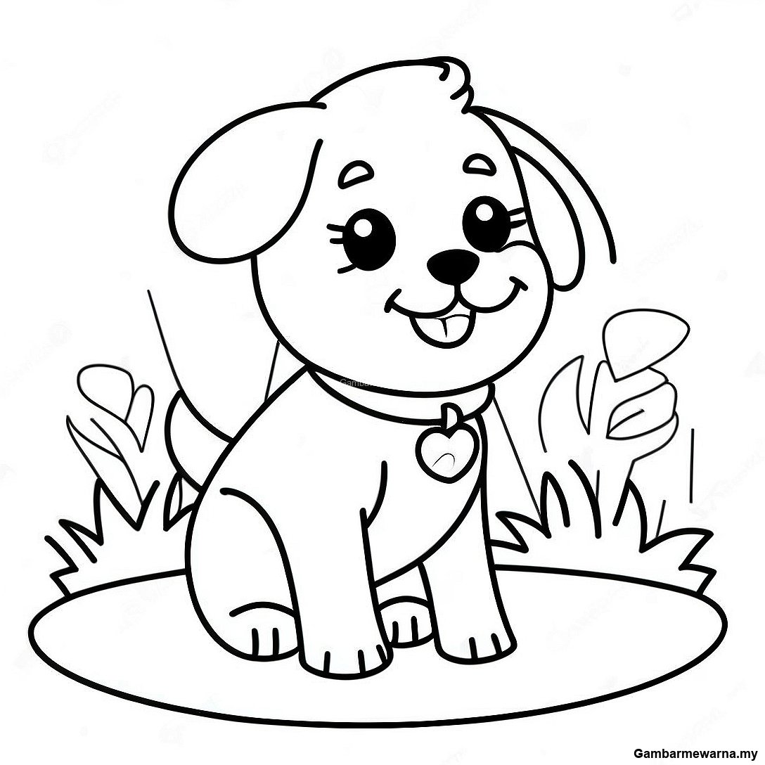 Halaman Mewarna Anjing Puppy Barbie Yang Comel Bermain