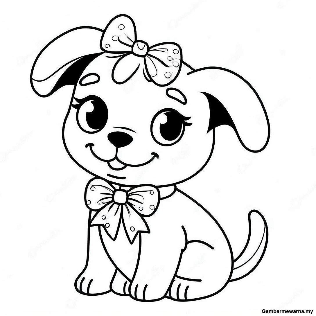 Muat turun PDF Boleh Cetak Halaman Mewarna Anjing Puppy Barbie Yang Menawan Dengan Pita