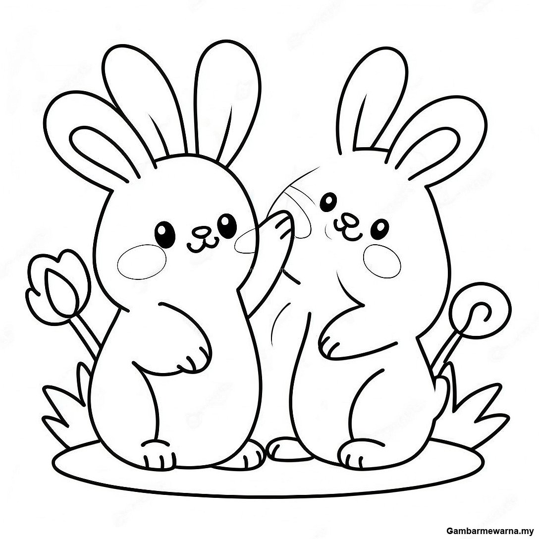 Halaman Mewarna Arnab Cerah Comel Dengan Bunga 96027 35107