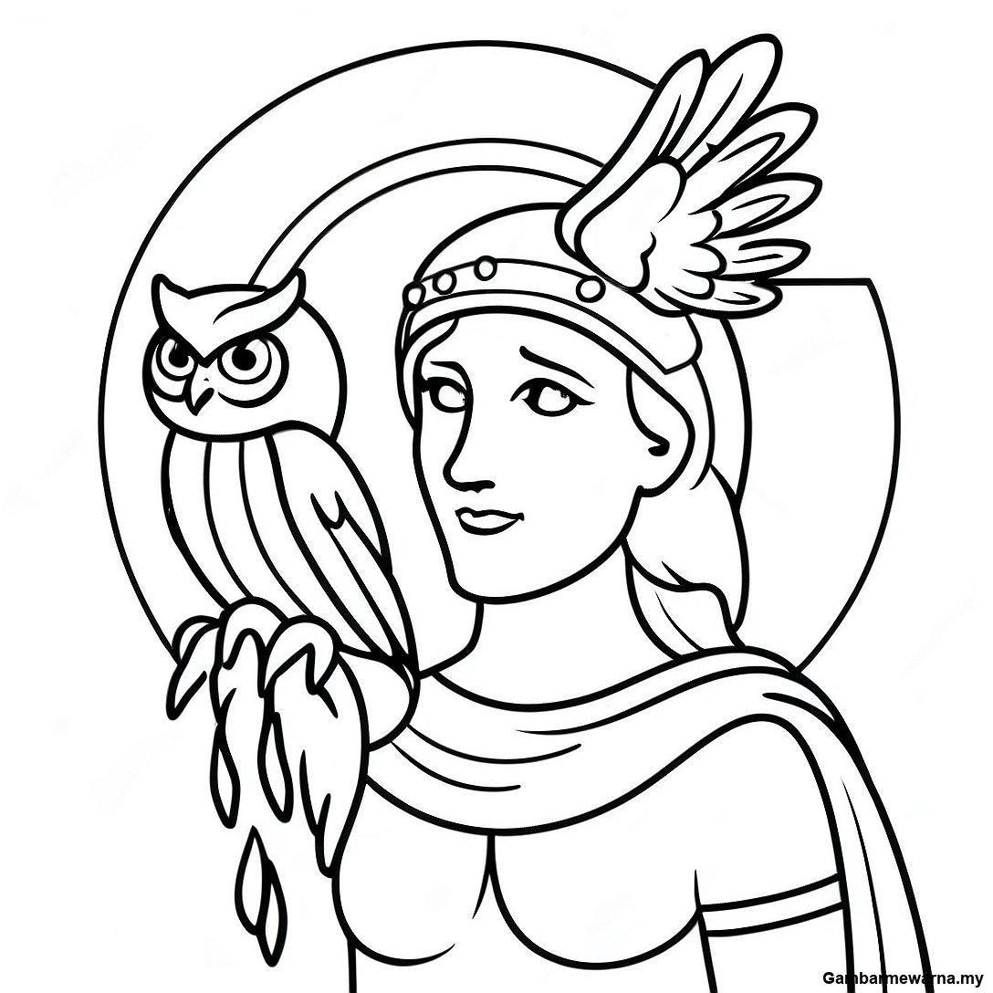 Muat turun PDF Boleh Cetak Halaman Mewarna Athena Dengan Burung Hantu