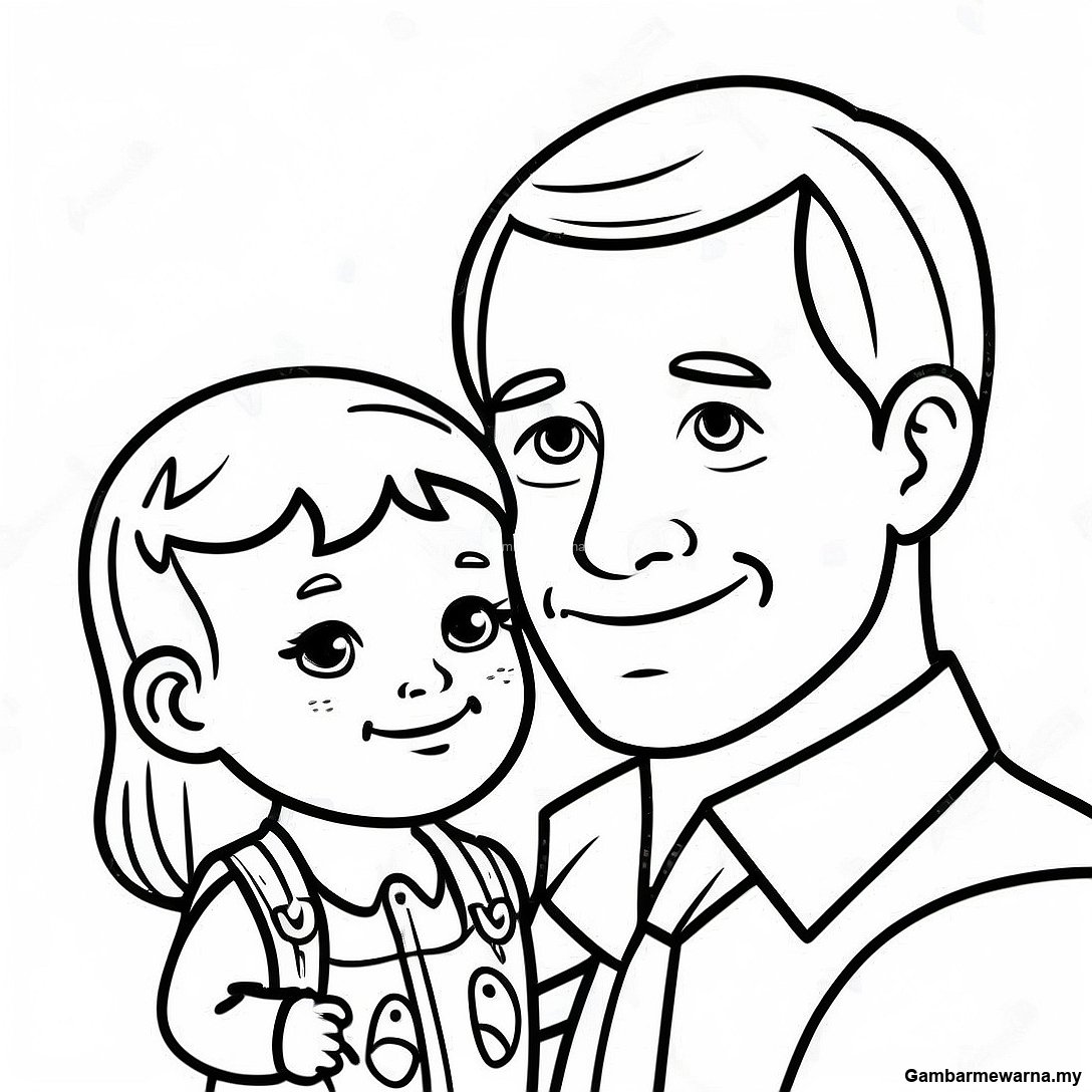 Halaman Mewarna Ayah Dan Anak Yang Comel
