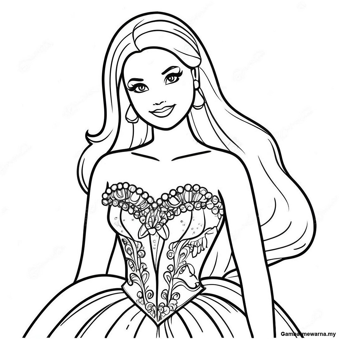 Halaman Mewarna Barbie Dalam Pakaian Berkilau