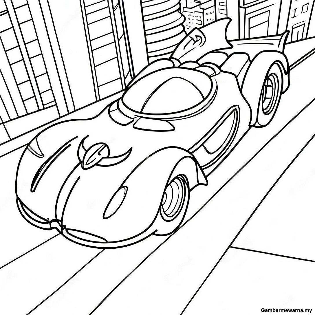 Halaman Mewarna Batmobile Berlumba Melalui Gotham