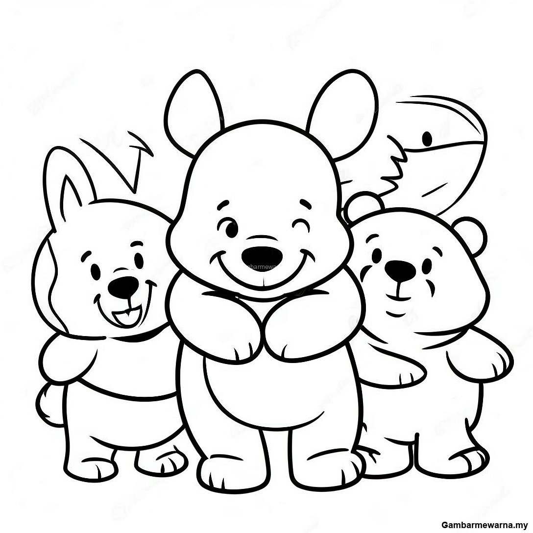 Halaman Mewarna Bayi Winnie The Pooh Yang Comel Dengan Kawan-Kawan
