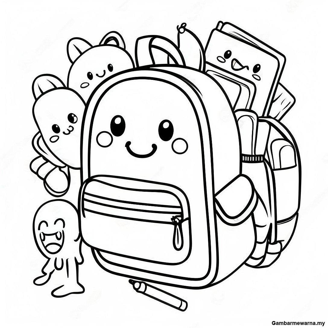 Muat turun PDF Boleh Cetak Halaman Mewarna Beg Galas Lucu Dengan Watak Kartun
