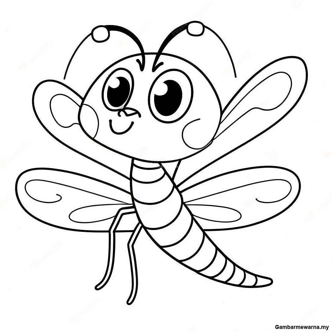 Halaman Mewarna Belalang Kartun Comel Dengan Mata Besar