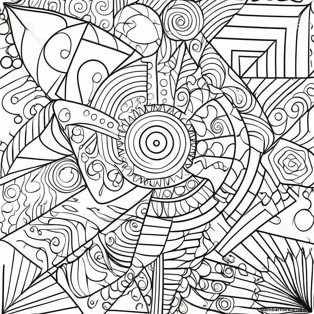 Halaman Mewarna Bentuk Geometri Ilusi Optik Yang Berwarna-Warni
