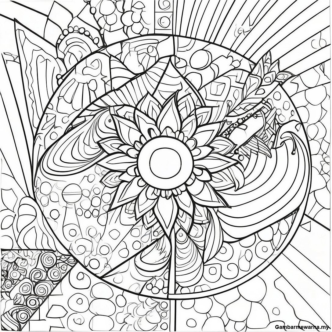 Halaman Mewarna Bentuk Geometri Ilusi Optik Yang Berwarna-Warni