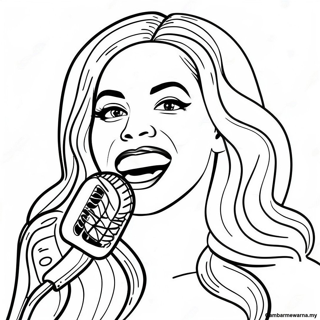 Halaman Mewarna Beyonce Menyanyi Ke Mikrofon