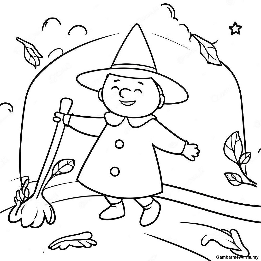 Halaman Mewarna Bilik Di Atas Penyapu