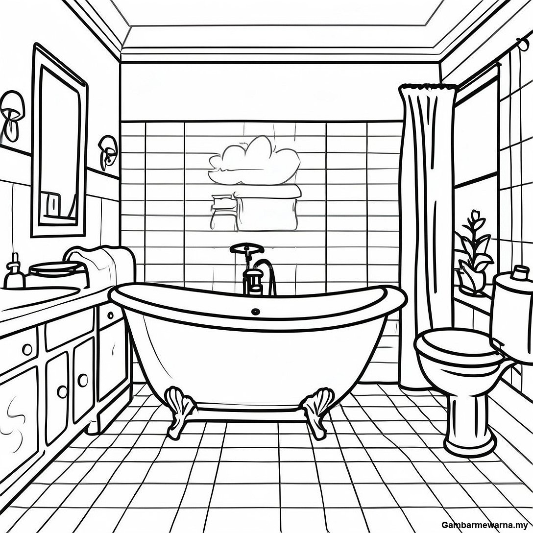 Muat turun PDF Boleh Cetak Halaman Mewarna Bilik Mandi