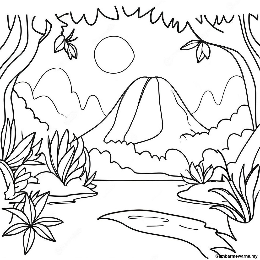 Muat turun PDF Boleh Cetak Halaman Mewarna Bioma Hutan Hujan Tropika