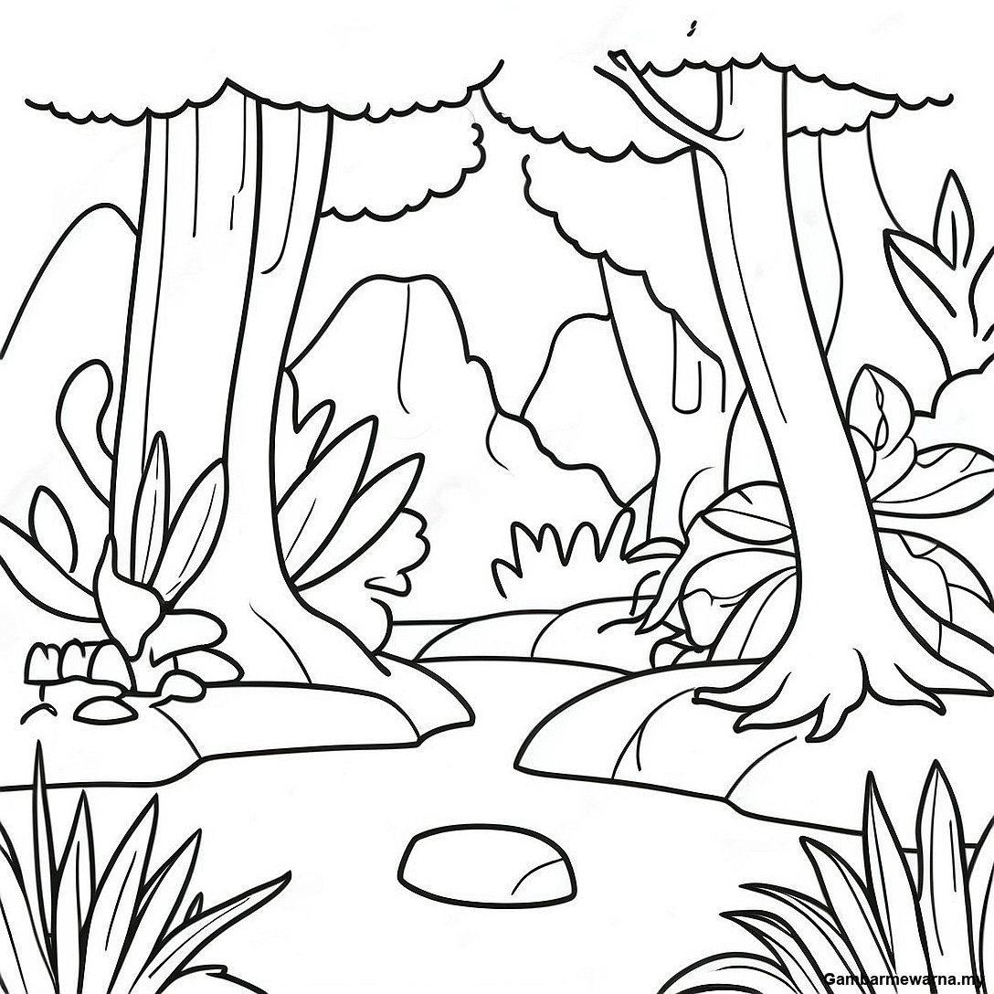 Muat turun PDF Boleh Cetak Halaman Mewarna Bioma Hutan Hujan Tropika